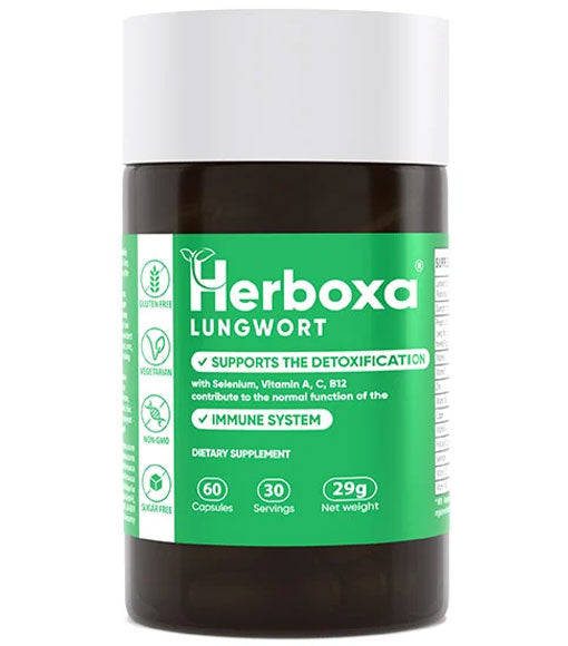 Herboxa® Lungwort napravljen je bez glutena, laktoze, mliječnih proizvoda, kukuruza, soje i GMO sastojaka.